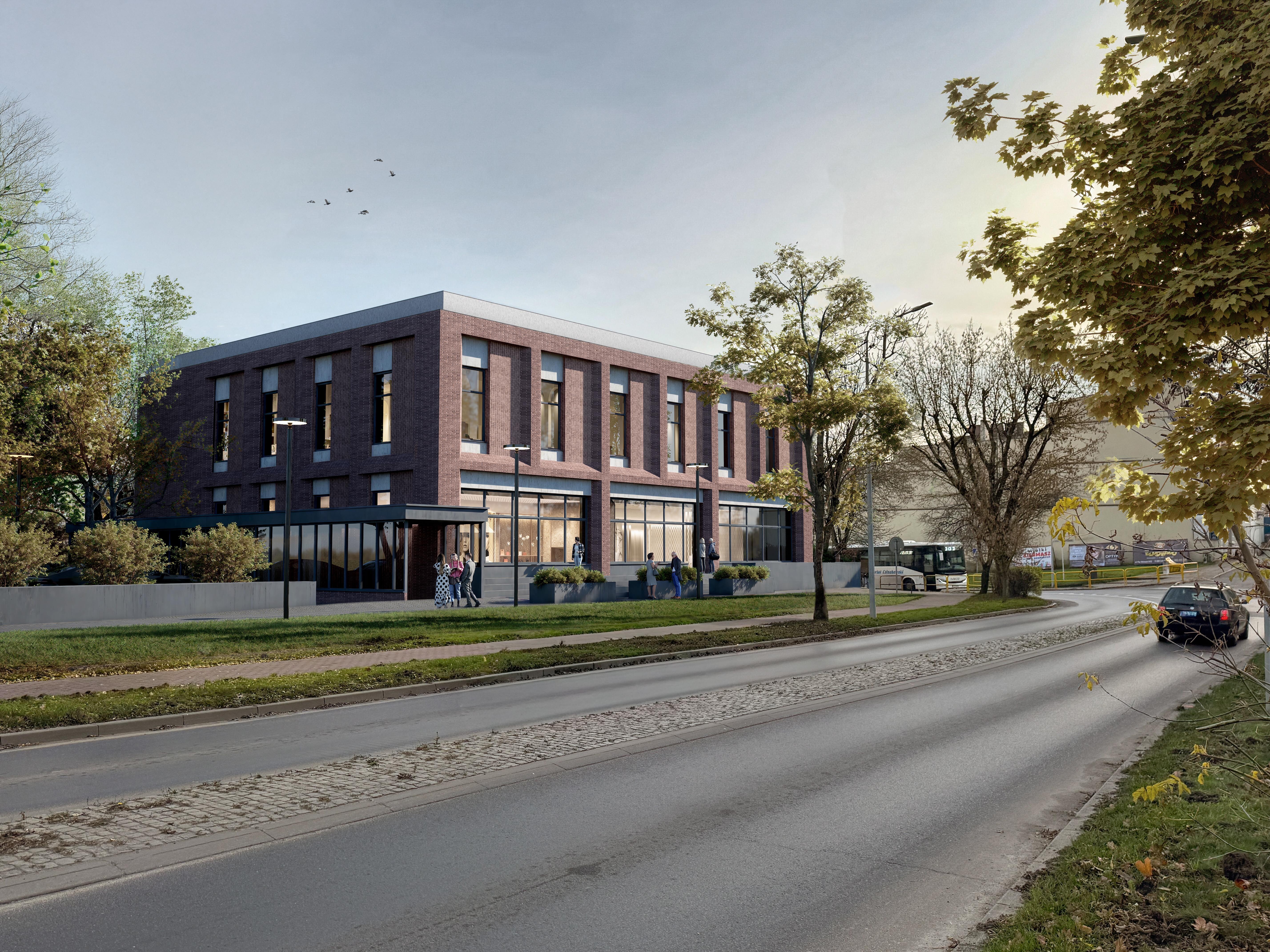 Nasza koncepcja stanowi ukłon w stronę oryginalnej modernistycznej bryły, subtelnie łącząc ją z wielowarstwową cegłą, która nawiązuje do zamkowego charakteru miast.