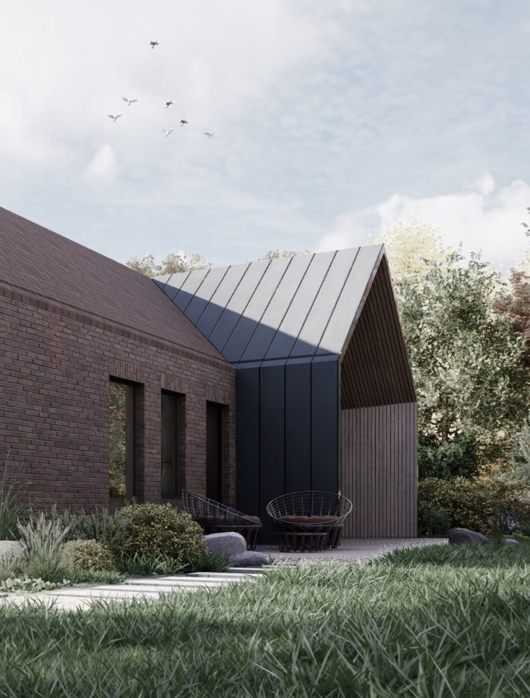 Dom, w przeciwieństwie do dominującej w okolicy zabudowy o białych tynkach i przypadkowych formach, staje się precedensem — przykładem, że współczesna architektura może być kontekstowa, świadoma i zakorzeniona w tożsamości miejsca.