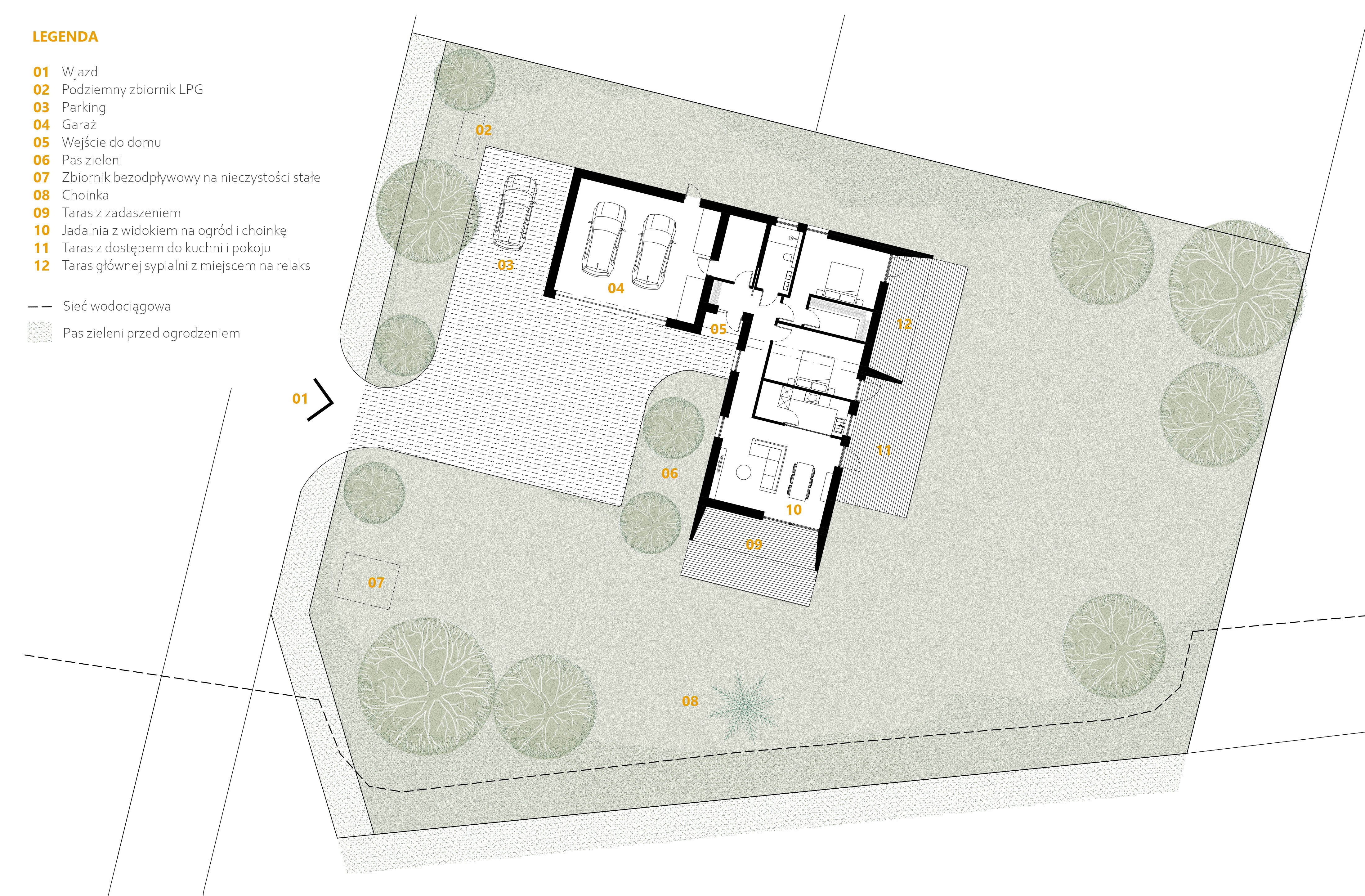 Projekt domu jednorodzinnego w Chojnicach to współczesna interpretacja architektury wiejskiej, wpisana w kontekst miasta o bogatej historii. Budynek zlokalizowany jest na działce o dawnym charakterze rolnym, w strefie ochrony ekspozycji, z której rozciąga się widok na panoramę Chojnic. Forma domu oraz dobór materiałów są wynikiem świadomego poszukiwania równowagi między tradycją i nowoczesnością.
