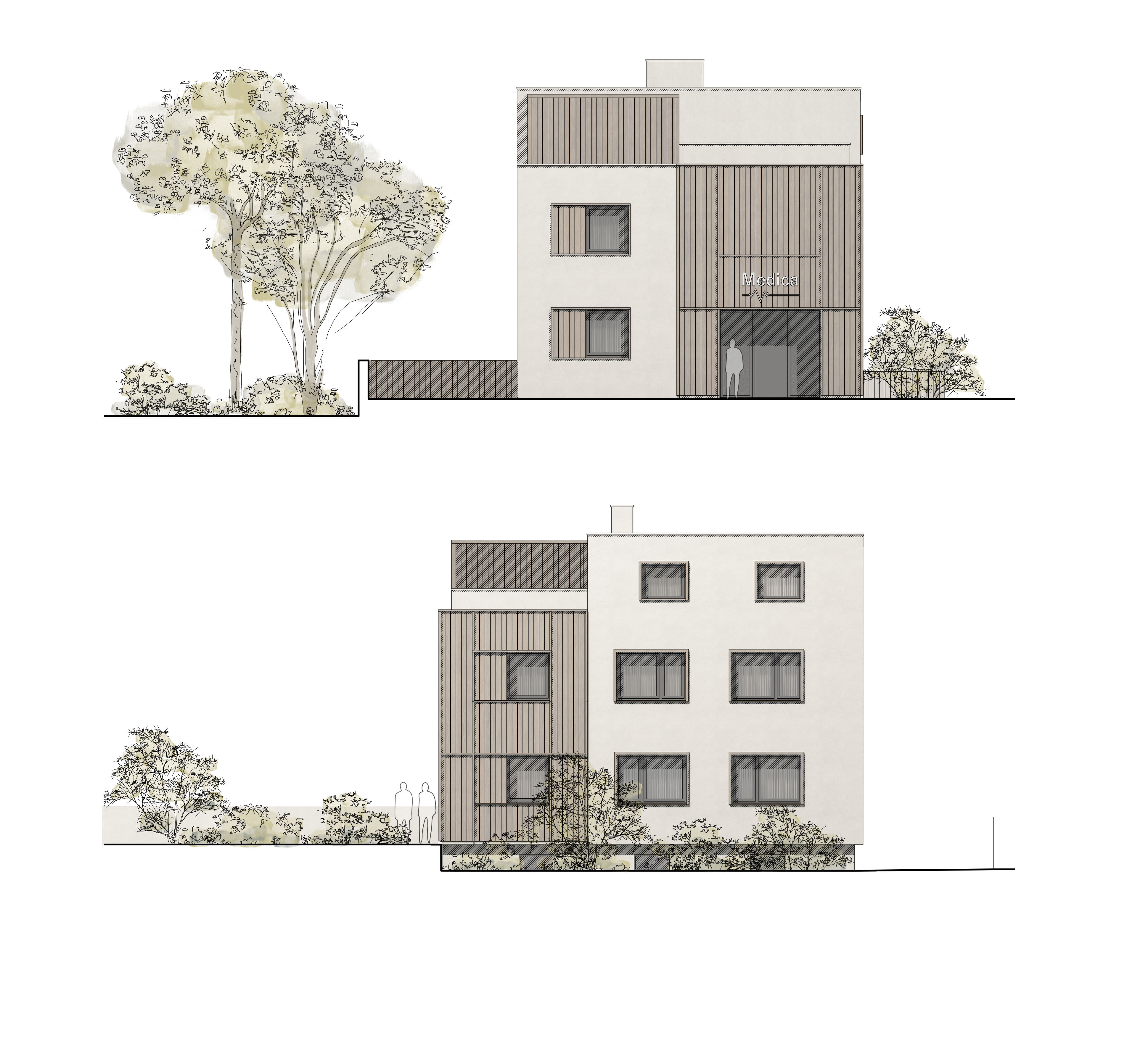 To rozwiązanie tworzy spójną relację między nowoczesną architekturą a otaczającą miejską zielenią. Projekt zyskuje dzięki temu unikalny, wyważony charakter, który subtelnie wyróżnia go w przestrzeni, nie burząc jednocześnie ładu urbanistycznego osiedla.